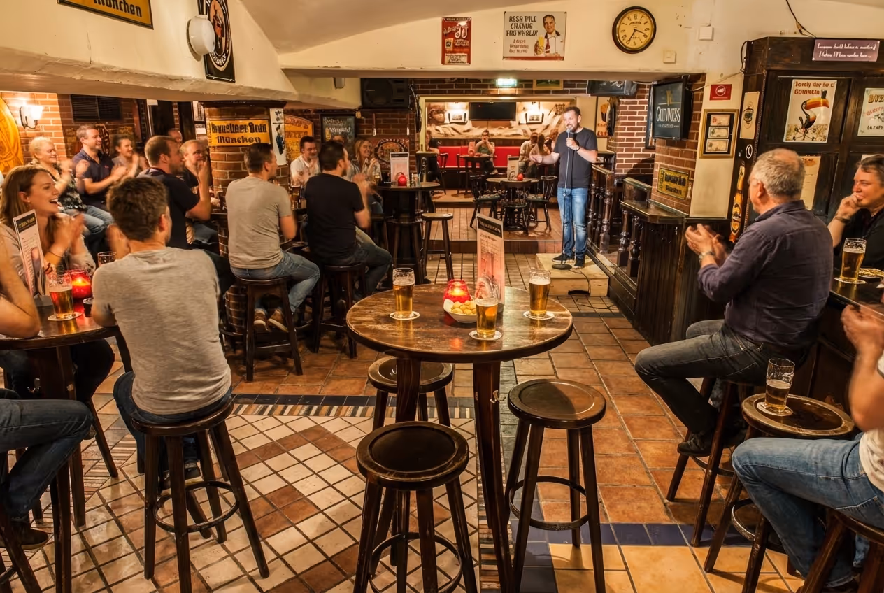 After work can slide very nicely into our weekly rhythm. Tuesday brings student karaoke which begins around twenty thirty and runs on good vibes and brave voices. There is no signup list. You walk in you pick a song and you sing while your friends cheer you from the booth. Wednesday is our open stage comedy night where sets begin near twenty and the crowd is famously kind to new performers. Thursday is our bilingual pub quiz. Doors open early and the first question lands at twenty. It is best to arrive before nineteen if you want a prime table and time to order a round. Friday and Saturday are karaoke nights that go late and make heroes out of regular people with unexpected stage presence. On those nights after work can turn into after midnight without anyone noticing.
