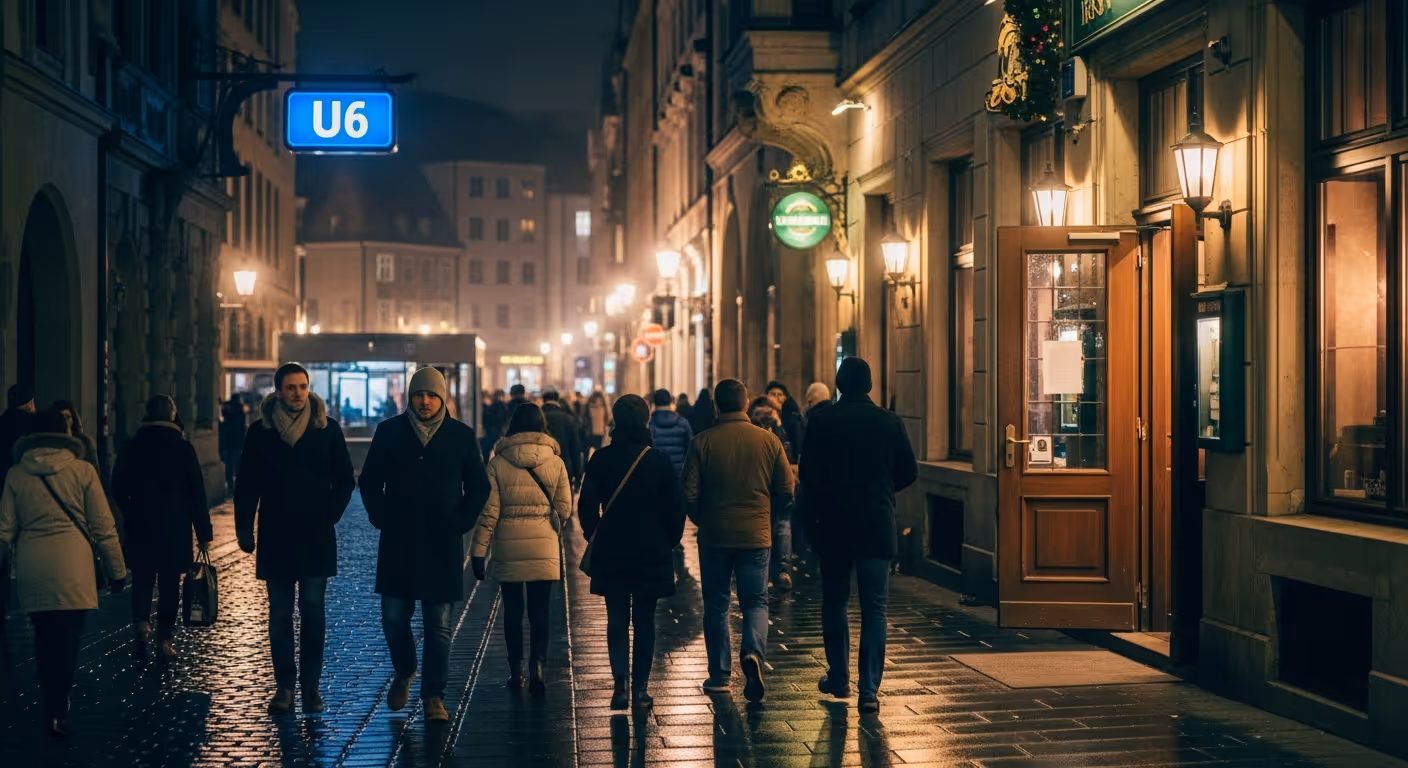 When the night ends, walk back to Giselastrasse for the U6 south to Marienplatz. Taxis and ride share cars are easy to hail on the main streets. Keep your scarf and gloves ready at the door so you step out warm and calm.